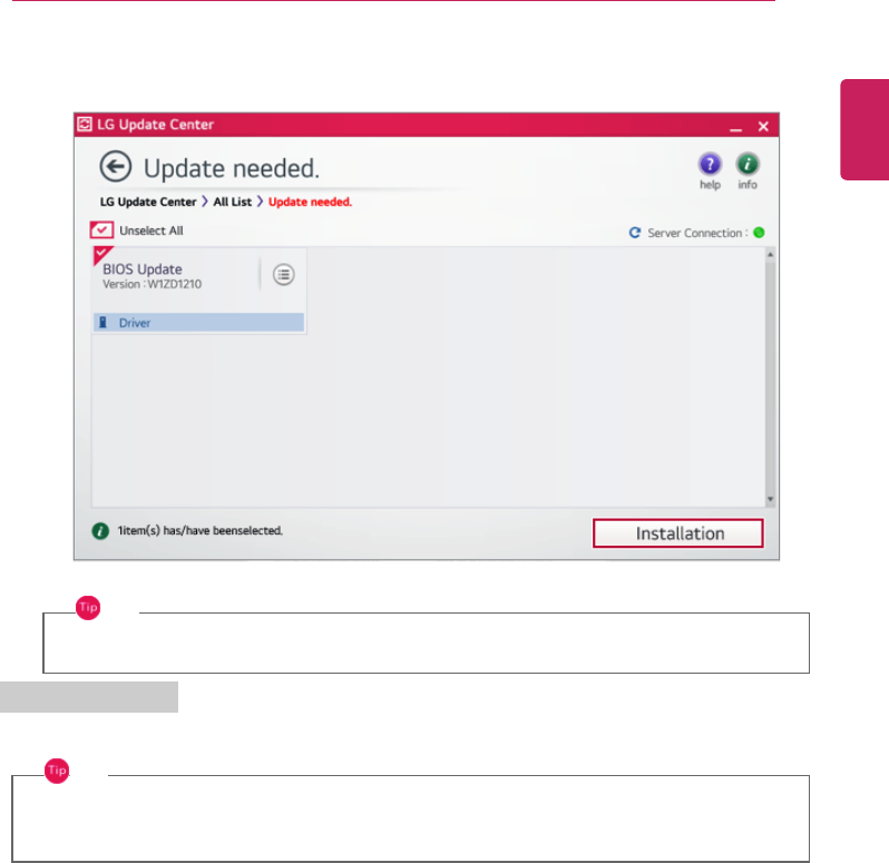 2 Select the updates to install and press the [Installation] button.