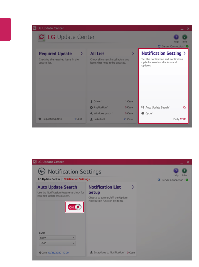2 Set [Auto Update Search] to [ON] or [OFF].