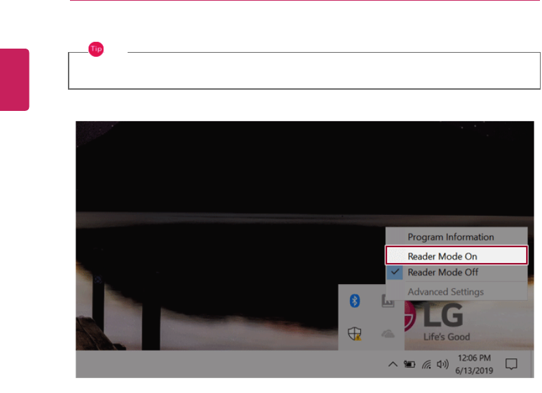 2 If you select the [Reader Mode On] menu item, the PC screen switches to Reader Mode.