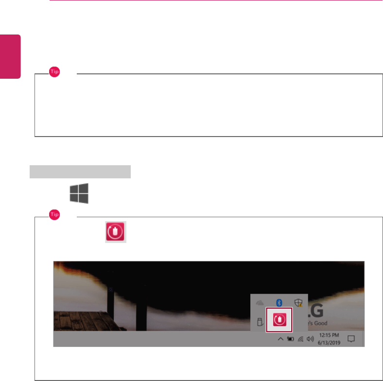 ] icon on the right side of the taskbar to start the [LG Power Manager].