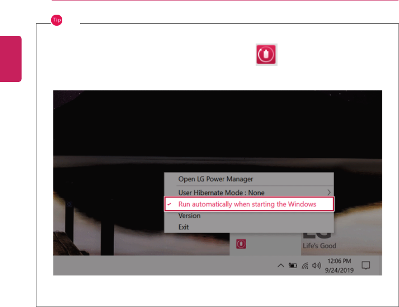 taskbar and selecting the [Run automatically when starting the Windows] menu.