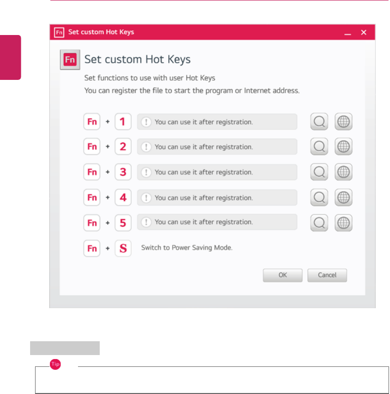 Hot keys can be set from 1 to 5, and the [Fn] + [S] Sleep Mode cannot be changed.