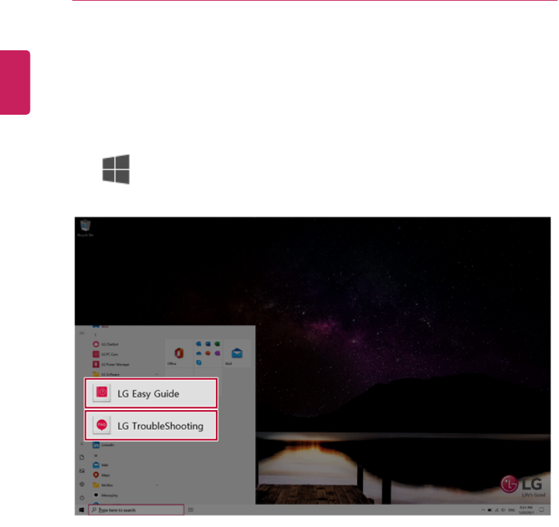 ], select [LG Software], and run [LG Easy Guide] or [LG TroubleShooting].