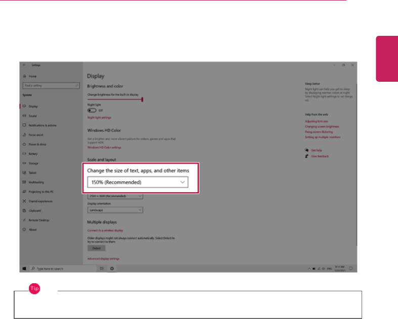 3 Modify the [Change the size of text, apps, and other items] value to change the Auto Scaling