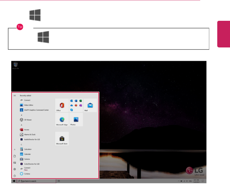 ] key or [Ctrl] + [Esc] to display the Start menu.
