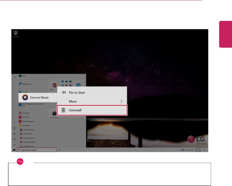 If you are deleting a desktop app, the [Programs and Features] window appears. Right-click