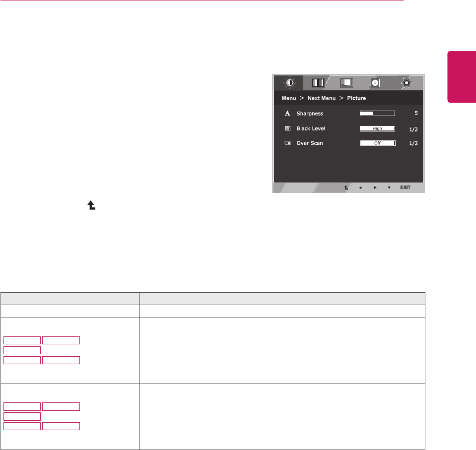 ToselecttherangeofoutputimageforDTVtiminginHDMIinput.(onlyforHDMI