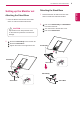 ASSEMBLING AND PREPARING Detaching the Stand Base Attaching the Stand Base 1 Place the Monitor set with the screen side down on a flat and cushioned surface. 1 Place the Monitor set with the screen side down on a flat and cushioned surface. 2 CAUTION Lay a foam mat or soft protective cloth on the surface to protect the screen from damage. 2 1 Pull out the Stand Body and Stand Base from the monitor set. 2 Turn the screw to the left with a coin. 3 Pull out the Stand Base.