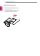 ASSEMBLING AND PREPARING Detaching the stand base Attaching the Stand Base 1 Place the monitor's screen face down. 1 Place the Monitor set with the screen side To protect the screen from scratches, cover the surface with a soft cloth. down on a flat and cushioned surface. CAUTION To protect the screen from scratches, cover yy the surface with a soft cloth. 2 Detach the stand base from the stand body.