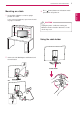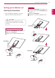 ASSEMBLING AND PREPARING Detaching the Stand Base ENGLISH ENG 1 Place the Monitor set with the screen side down on a flat and cushioned surface. 27EA53V 1 Turn the screw to the left with a coin. 2 Pull out the Stand Base from the Stand Body. 3 Remove two screws and pull out the Stand Body from the monitor set. 2 22EA53V/23EA53V/24EA53V 1 Pull out the Stand Body and Stand Base from the monitor set. 2 Turn the screw to the left with a coin. 3 Pull out the Stand Base.