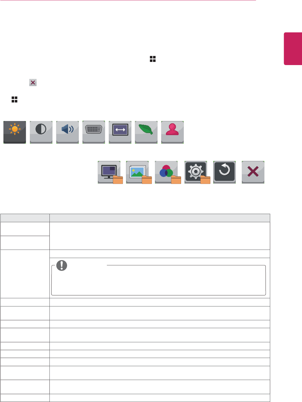 Color (Krāsa) Regulē ekrāna gammu, krāsu temperatūru un krāsu līdzsvaru.