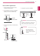 SURINKIMAS IR PARUOŠIMAS Kampo reguliavimas ĮSPĖJIMAS LIETUVIŲ LT K. 1 Pastatykite monitorių ant sumontuoto stovo pagrindo. 2 Reguliuokite ekrano kampą. Ekranas gali būti pakreiptas į priekį ir atgal nuo -5° iki 15°, kad būtų patogu į jį žiūrėti. 15 Galinė pusė -5 Priekinė pusė ĮSPĖJIMAS Kad reguliuodami ekraną nesusižeistumėte pirštų, nelaikykite apatinės monitoriaus rėmo dalies (kaip parodyti toliau). Nelieskite ir nespauskite ekrano, kai reguliuojate monitoriaus kampą.