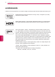 LICENCIJOS LICENCIJOS Palaikomos licencijos priklauso nuo modelio. Daugiau informacijos apie licencijas rasite adresu www.lg.com. Pagamintas gavus „Dolby Laboratories“ licenciją. „Dolby“ ir dviguba D yra „Dolby Laboratories“ prekės ženklai. HDMI, HDMI logotipas ir „High-Definition Multimedia Interface“ yra prekės ženklai arba registruotieji prekės ženklai, priklausantys bendrovei „HDMI Licensing LLC“. APIE „DIVX VIDEO“: „DivX®“ - tai skaitmeninio vaizdo formatas, sukurtas „DivX, Inc.“.