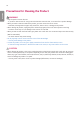 WARNING •• Contact the service center before moving the product. -- It may cause electric shock and damage the product. •• Make sure the product is turned off, unplugged, and all cables have been removed before the product is moved. -- You may be electrocuted or the product can be damaged. •• When moving the product, do not shock or cause an impact on the front panel. -- You may be electrocuted or the product can be damaged. •• Use the correct number of people according to the weight of the product.