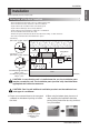 Installation Connection method of the connecting cable(Example) 1(L1) 2(L2) 3(A) 4(B) L(L1) Power Supply High Voltage (208/230V) N(L2) L(L3) Power Supply High Voltage (208/230 V) Lock nut Conduit N(L4) Lock nut Conduit mounting plate • TQ/TR Chassis Conduit Conduit mounting plate • TM/TN/TP Chassis WARNING : Loose wiring may cause the terminal to overheat or result in unit malfunction. A fire hazzard may also exist. Therefore, be sure all wiring is tightly connected.