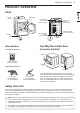 PRODUCT OVERVIEW 9 PRODUCT OVERVIEW Parts Control panel Reversible door Lint filter Leveling feet Accessories Terminal block access panel (electric models) Gas connection location (gas models) Power cord location (gas models) Water inlet valve (on some models) Exhaust duct outlet Two-Way Reversible Door (on some models) Included Accessories Release Safety Tether Kit (on some models) Hamper door Optional Accessories Swing door Drying rack (sold separately) No.