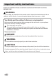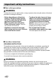 Important safety instructions ■ Basic safety precautions WARNING To reduce the risk of fire, electric shock, or injury to persons when using the washer, follow basic precautions, including the following: • Before discarding an old machine unplug it. Render the plug useless. Cut off the cable directly behind the appliance to prevent misuse. • When a product was under water, Please call service center. There is a risk of electric shock and fire.