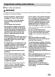 Important safety instructions READ ALL INSTRUCTIONS AND EXPLANATION OF THE INSTALLATION BEFORE USE. WARNING For your safety, the information in this manual must be followed to minimize the risk of fire or explosion, electric shock, or to prevent property damage, injury to persons, or death. Your Safety and the safety of others are very important. We have provided many important safety messages in this manual and on your appliance. Always read and obey all safety messages. This is the safety alert symbol.