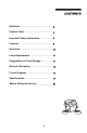 Intallation ........................................... Feature Chart ..................................... Important Safety Information Features ................ ............................................. Operation ........................................... Lamp Replacement .............................. Suggestions on Food Storage General Information Circuit Diagram Specifications ............... ............................. .................................. ............................
