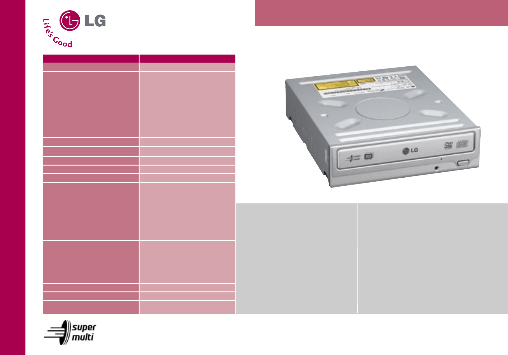 • Writes to DVD-RAM (5x), DVD-RW (6x),