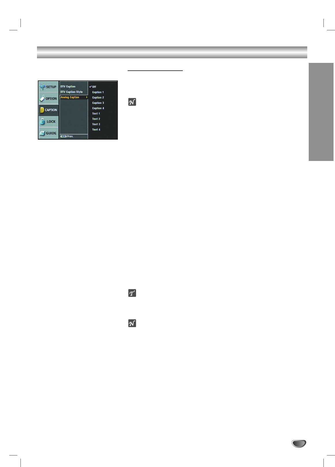 If DTV and Analog Caption are received simultaneously, you can only select