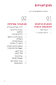 תוכן העניינים 5 הנחיות לשימוש בטוח ויעיל 01 02 תכונות הניתנות להתאמה אישית פונקציות בסיסיות 14 הפעל מסך 15 צילום בתנועת יד 17 רכיבי מוצרים ואביזרים 18 סקירה כללית של החלקים 20 הדלקה או כיבוי 21 התקנת כרטיס הSIM- והסוללה 24 טעינת הסוללה 25 מיטוב חיי הסוללה 26 הכנסת כרטיס הזיכרון 27 הוצאת כרטיס הזיכרון 27 מסך המגע 31 מסך ראשי 36 נעילת מסך 37 הצפנת המכשיר 37 יצ