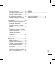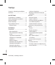 Turinys Saugaus ir veiksmingo naudojimo nuostatos...................................................... 8 NUSTATYMAS Susipažinimas su telefonu....................13 SIM ir akumuliatoriaus įdėjimas .........16 Atminties kortelė .....................................18 Meniu žemėlapis......................................19 Jūsų budėjimo ekranas .........................21 Būsenos juosta .....................................21 PAGRINDAI Skambučiai ................................................