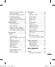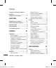 Turinys Saugaus ir veiksmingo naudojimo nuostatos............................................... 5 Susipažinimas su telefonu...................... 9 NUSTATYMAS 01 Susipažinimas su telefonu...................... 9 SIM ir akumuliatoriaus įdėjimas........... 11 Atminties kortelė.................................. 13 Meniu žemėlapis.................................. 14 Jūsų budėjimo ekranas........................ 16 PAGRINDAI 02 Skambučiai.......................................... 17 Balso skambučiai.....