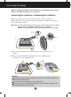 Connecting the Display Before setting up the monitor, ensure that the power to the monitor, the computer system, and other attached devices is turned off. Positioning your display 1. Adjust the position of the panel in various ways for maximum comfort. Tilt Range : -5˚~25˚ Swivel :350˚ Height Range : maximum 3.15 inch (80.00mm) 80.0mm First, remove the locking pin. Landscape & Portrait : You can rotate the panel 90o clockwise. (* For detailed information, please refer to the Pivot Software CD provided.