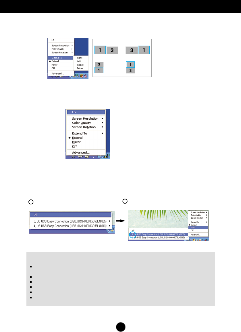 5. Når du bruker flere USB-monitorer, kan du sette "LG USB Easy Connection"-