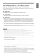 IMPORTANT SAFETY INSTRUCTIONS 3 READ ALL INSTRUCTIONS BEFORE USING THE APPLIANCE. Always comply with the following precautions to avoid dangerous situations and ensure peak performance of your product ! WARNING It can result in serious injury or death when the directions are ignored ! CAUTION It can result in minor injury or product damage when the directions are ignored ! WARNING • Installation or repairs made by unqualified persons can result in hazards to you and others.