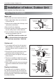 Installation of Indoor, Outdoor Unit Installation of Indoor, Outdoor Unit Read completely, then follow step by step. Select the best location Indoor unit 1. Do not have any heat or steam near the unit. 2. Select a place where there are no obstacles in front of the unit. more than 500 (19-11/16) more than 200 (7-7/8) 3. Make sure that condensation drainage can be conveniently routed away. 4. Do not install near a doorway. 5.