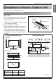 Installation How to Fix Keep the length of the bolt from the bracket to 40mm(1-9/16 inch) Hanging bolt (W3/8 or M10) Nut (W3/8 or M10) Flat washer for M10 (accessory) Ceiling board Spring washer (M10) ① Hanging Bolt - W 3/8 or M10 ② Nut - W 3/8 or M10 Ceiling board Keep the length of 31~34mm(1.22~1.34inch) between the air conditioner bottom surfac e and the ceiling surface Flat washer for M10 (accessory) Nut (W3/8 or M10) • The following parts are local purchasing.