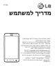 אודות מדריך למשתמש זה אודות מדריך למשתמש זה •לפני השימוש במכשיר ,אנא קרא בעיון מדריך זה .הדבר יבטיח שתשתמש בטלפון שלך בצורה נכונה ובטוחה. •חלק מהתמונות ומצילומי המסך המופיעים במדריך זה עשויים להיראות שונים בטלפון שלך. •התוכן שלך עשוי להיות שונה מהמוצר הסופי או מהתוכנה המסופקת על-ידי ספקי שירות או מפעילים סלולריים .תוכן זה נתון לשינויים ללא הודעה מוקדמת .לקבלת הגרסה העדכנית של מדריך זה ,בקר באתר האינטרנט של LGבכתובת .www.lg.