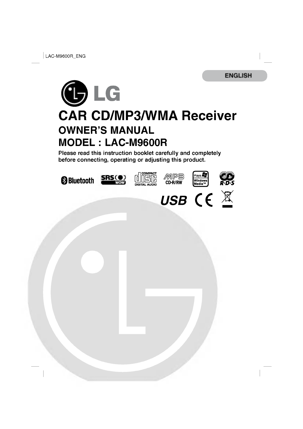 LAC-M9600R_ENG ENGLISH CAR CD/MP3/WMA Receiver OWNER'S MANUAL MODEL : LAC-M9600R Please read this instruction booklet before connecting, operating or carefully and completely adjusting this product.