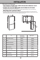 CONNECTION • Choose the suitable place. Locate the refrigerator in a place convenient for its use; • This is a freestanding refrigerator and requires a minimum of 2 inches (5 cm) clearance above, behind, and at both sides for adequate air circulation and to reduce energy consumption.