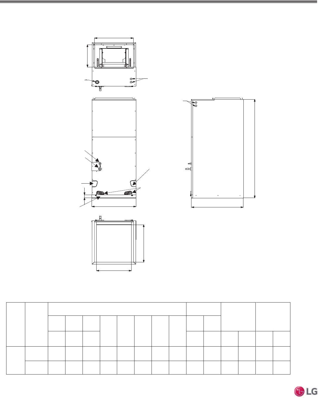 )LJXUH Four-way Vertical Air Handling Unit Dimensions.