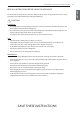 1_MFL67855701_Eng.indd 45 2013.7.24 11:45:43 AM 53 WARRANTY THIS LIMITED WARRA ENGLISH 1. 2. 3. 4. 5. 6. 7. 8. 9. 10. 11. 12. 13. 14. 15. 16. 17. NTY DOES NOT COVER: Service trips to deliver, pick up, install, or repair the product; instruct the customer on operation of the product; repair or replace fuses or correct wiring or plumbing, or correction of unauthorized repairs/installation. Failure of product to perform during power failures and interruptions or inadequate electrical service.