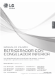 ESPAÑOL MANUAL DE USUARIO REFRIGERADOR CON CONGELADOR INFERIOR Lea detenidamente este manual antes de empezar a utilizar el refrigerador y guárdelo como referencia para el futuro. Nombre de Modelo ** =número de color GM-B22*QTB GM-B24*QTB LBC24360** LBN22370** LDC22370** LDC24370** P/No. : MFL67851402-10 LDN22470** GB24BGS LDCS24223* GB22BGS LDNS22220* LDCS22220* www.lg.com Copyright © 2013 - 2017 LG Electronics Inc.
