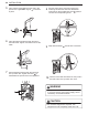 INSTALLATION 17 Sliding Dishwasher into Cabinet Opening NOTE ••Open the door and grab the body frame and the top front opening of the tub to move or lift the dishwasher. ENGLISH CAUTION ••Do not pull or lift the dishwasher using the handle . Doing so can damage the door and hinges. 1 Align the dishwasher with the opening. Make sure the water supply line and electrical cable are in the correct positions to slide into their channels properly.