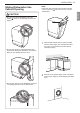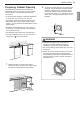 INSTALLATION 17 Sliding Dishwasher into Cabinet Opening NOTE ••Open the door and grab the body frame and the top front opening of the tub to move or lift the dishwasher. ENGLISH CAUTION ••Do not pull or lift the dishwasher using the handle . Doing so can damage the door and hinges. 1 Align the dishwasher with the opening. Make sure the water supply line and electrical cable are in the correct positions to slide into their channels properly.