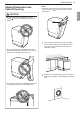 INSTALLATION 17 Sliding Dishwasher into Cabinet Opening NOTE ••Open the door and grab the body frame and the top front opening of the tub to move or lift the dishwasher. ENGLISH CAUTION ••Do not pull or lift the dishwasher using the handle . Doing so can damage the door and hinges. 1 Align the dishwasher with the opening. Make sure the water supply line and electrical cable are in the correct positions to slide into their channels properly.