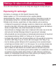 Viesti Mahdolliset syyt Mahdolliset korjaustoimenpiteet Akkua ei ole ladattu. Lataa akku. Ulkolämpötila on liian korkea tai matala. Varmista, että puhelin latautuu normaalilämpötilassa. Yhteysvirhe Tarkista laturi ja puhelimen latausliitäntä. Tarkista akun liittimet ja puhdista ne tarvittaessa. Ei jännitettä Kytke laturi toiseen pistorasiaan. Viallinen laturi Vaihda laturi. Väärä laturi Käytä ainoastaan alkuperäisiä LG:n lisävarusteita. Viallinen akku Vaihda akku.