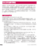 潛在爆炸氣壓 • 請勿在加油站使用手機。 • 請勿在燃料或化學物質附近使用手機。 • 請勿在放置了手機及配件的汽車車廂運送或擺放易燃氣體、液體或 爆炸物。 在飛機上 無線裝置可引致飛機干擾。 • 登機前,請先關掉手機。 • 未經地勤人員批准,請勿在機艙內使用手機。 兒童 請將手機放在兒童接觸不到的安全地方。 手機包含微細零件,如果拆 開,可能造成哽咽危險。 緊急通話 某些流動網絡可能無法使用緊急通話。 因此,您不應僅倚賴手機作為 緊急通話的方式。 請向您本地的服務供應商查詢。 電池資料及保護 • 充電前,您無須完全放電。 跟其他電池系統不同,它不會產生可 降低電池效能的記憶效應。 • 只使用 LG 電池及充電器。 LG 充電器是為將電池壽命擴至最大而 設。 • 請勿拆解電池或造成電池短路。 • 請保持電池的金屬接點清潔。 • 當電池不再提供可接受的效能,請更換電池。 電池組在必須更換 前可重新充電數百次。 8 安全及有效使用準則