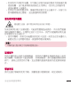 產品保護及維護 警告 請僅使用經認可適用於此特定手機型號的 LG 電池、充電器及配件。 使用其他種類的配件可能會導致手機的認可或保養失效,並可能引 致危險。 • 請勿拆開此裝置。 如手機需要維修,請由合格的維修技師進行維 修。 • 根據 LG 的政策,保養期內的維修可能會包括更換部件或主板,這 些用於更換的部件或主板可能全新的或是經過翻新的,但其功能與 被更換的部件相同。 • 請遠離如電視、收音機或個人電腦等電器產品而使用手機。 • 裝置需遠離發熱來源,如散熱器或烹調器具。 • 請勿摔落手機。 • 請勿讓此裝置遭機械震動或衝擊。 • 請於任何有特殊限制的地方關閉手機。 例如,請勿在醫院內使用 手機,否則它可能會對敏感的醫療設備造成影響。 • 請勿以潮濕的雙手對充電中的手機進行操作。 這可能會引致觸電 和造成手機嚴重損壞。 • 請不要在易燃材料附近為手機充電,因為充電期間手機會發熱並導 致火災。 • 使用乾布清潔裝置表面(請勿使用苯、稀釋劑或酒精等溶劑)。 • 切勿在布質家具上為手機充電。 • 手機應在通風良好的環境中充電。 • 請勿讓此裝置接觸過多煙霧或塵埃。 • 請勿將手機置於信用卡或車票附近,這可能會