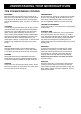 TROUBLESHOOTING Questions and Answers Operation Answer Question Why is the oven light not on during cooking? There may be several reasons why the oven light is not on. Have you: • Set a cook time? • Touched START? Why does steam come out of the air exhaust vent? Steam is normally produced during cooking. The microwave oven has been designed to vent this steam. Will the microwave oven be damaged if it operates empty? Yes. Never operate the oven empty or without the glass turntable.