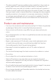 WARNING Despite a rating of IP68, your device is not impervious to conditions not tested in LG’s controlled environment. Please note that any damages that occur due to such causes changes the colour of the LDI (Liquid Damage Indicator). If the colour of LDI located inside the product changes, the product is to be considered ineligible for any free-of-charge repair services provided under the product’s limited warranty. Avoid exposing the product to environments with excessive dust or moisture.