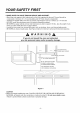 YOUR SAFETY FIRST • MAKE SURE YOU HAVE ENOUGH SPACE AND SUPPORT. - Mount the oven against a flat, vertical wall, so that it is supported by the wall. The wall should be constructed of minimum 2" x 4" wood studding and 3/8" thick drywall or plaster/lath. - ATTACH AT LEAST ONE of the two lag screws supporting the oven to a vertical, 2" x 4" wall stud. - DO NOT mount the microwave oven to an island or peninsula cabinet. - BE SURE the upper cabinet and rear wall structures are able to support 150 Ibs.