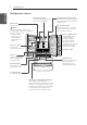 INSTALLATION Removing the Left Refrigerator Door ENGLISH 1 3 Remove the cover and pull out the tube Disconnect all wire harnesses . 4 Rotate the hinge lever counterclockwise . Lift the top hinge free of the hinge lever latch. . The water supply is connected to the upper right part of the rear surface of the refrigerator. Remove the ring in the joint area. Hold the water supply connection and gently push the Collet to detach the water supply line as shown in and .