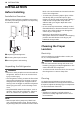 INSTALLATION 13 NOTE 2 Open both doors, and check to make sure that they close easily. If the doors do not close easily, tilt the refrigerator slightly more to the rear by turning both leveling legs to the left. It may take several more turns, and be sure to turn both leveling legs the same amount. Turning on the Power • After installing, plug the refrigerator’s power cord into a 3-prong grounded outlet and push the refrigerator into the final position. CAUTION • Connect to a rated power outlet.
